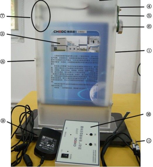 一、活動廣告牌模型的組成教育家TM活動廣告牌模型由廣告牌結(jié)構(gòu)、傳動裝置、控制器、傳感器、控制器連接線、背光控制裝置和直流電源幾部分組成。如圖1所示。 1 活動廣告牌模型組成 、活動廣告牌模型框架 、廣告內(nèi)容 、直流電機 、主動輪 、傳動皮帶 、從動輪 、限位傳感器 、背光控制裝置 、直流電源 、活動廣告牌模型控制器 、控制器連接線