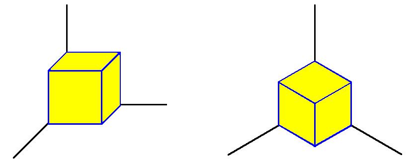 (2)斜二等軸測圖Y軸方向尺寸減半(如畫正方體時Y軸方向長度變成二分一)。