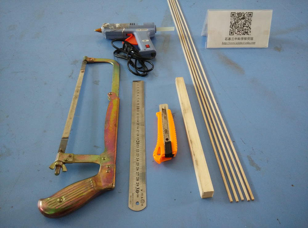 1、工具:小刀、尺子、手鋸、熱熔槍