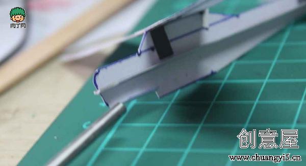 用卡紙卷一個(gè)大小合適的紙筒,套上去。邊套邊檢查中心是否在機(jī)翼中心位置。