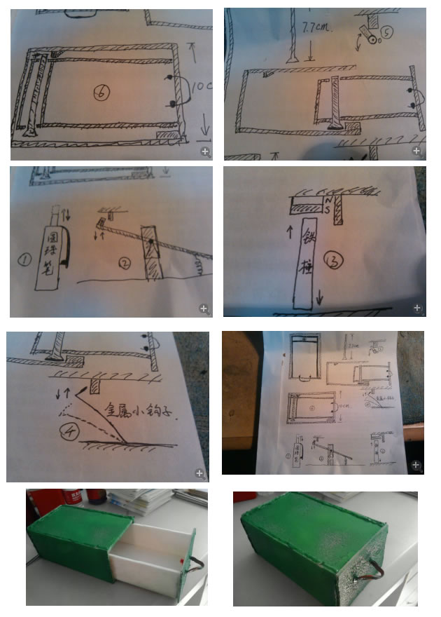 1、設(shè)計一個方形的小木盒,要求小木盒關(guān)上后能自已鎖上(鎖上的方式和原理自己設(shè)計,可以是重力卡鉤、或用磁吸使鉤子卡上等),通過一定的手段(比如倒過來震動一下)后又能打開。
