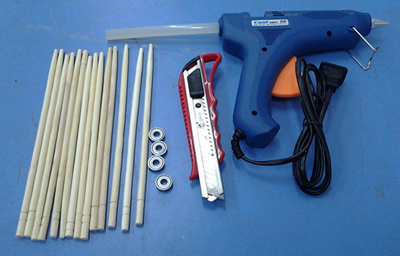 【實(shí)驗(yàn)材料】微型軸承4個(gè),一次性筷子80根、熱熔膠、小刀、鋼尺