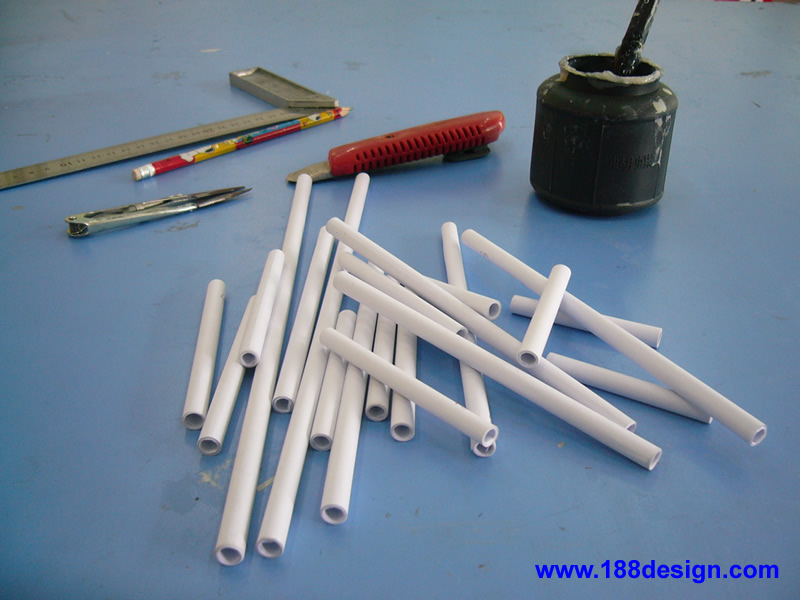 2、對著設(shè)計圖紙卷出相應紙梁(要預留連接部位的長度)