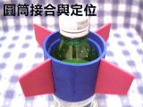 2. 套入上瓶子時,尾翼的圓套下方與瓶子的圓弧轉(zhuǎn)平位置對齊(標(biāo)籤的邊緣),如此整個箭體呈現(xiàn) "梭子" 的流線外型,風(fēng)阻可以達到最小,相對可以增加飛行距離。
