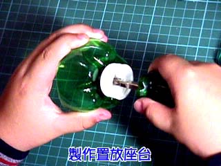 4. 切下的瓶底,再與瓶蓋,以螺絲結(jié)合就 可以用做水火箭的擺放基座。