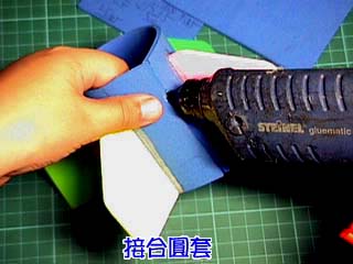 2、或者,在中心處剪掉6mm的圓孔,在捲合時,尖端就不會無法密合,但會有一個圓孔,那就用熱熔膠涂上封住,頂端呈圓形。