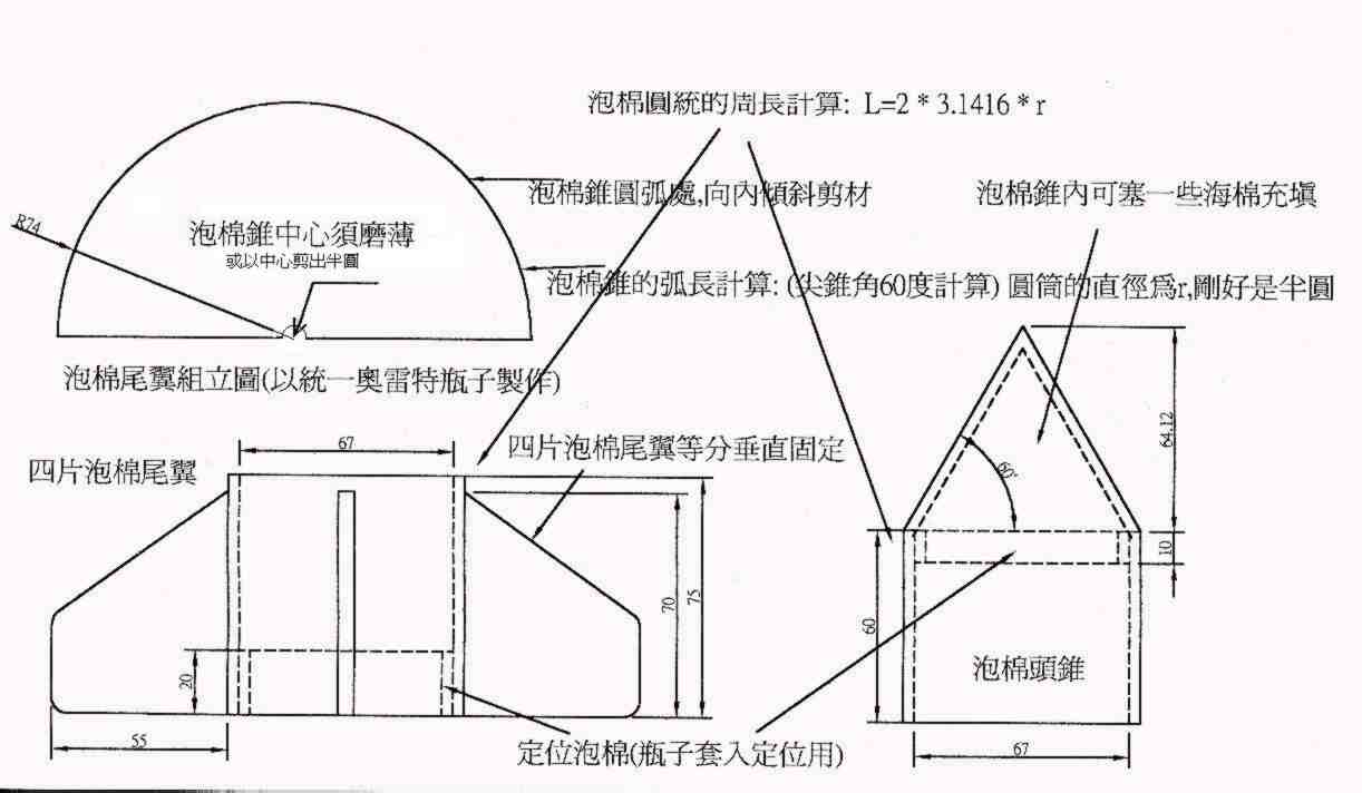 2. 用泡棉做圓套的好處是可以拆換不同的尾翼,以同一箭體可測試不同的尾翼效果。