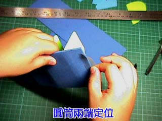 2、剪一條12mm寬,約202mm長的泡棉條,黏在圓筒內(nèi)側(cè)下方,當(dāng)尾翼筒套入保特瓶的定位作用。