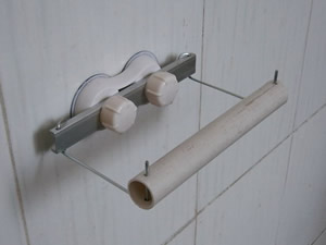 該廁紙架由真空吸架、橫梁、折疊掛鉤、套紙管組成。整個裝置通過真空吸吸附于廁所墻壁的瓷磚上(如圖1與圖2所示)。