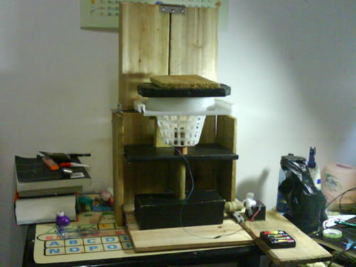本作品是“第二屆廣州市通用技術(shù)作品展”入圍作品 【作品名稱】無水式節(jié)能坐便器 【作品照片和設(shè)計圖】 【設(shè)計說明】 該作品是采用木板、塑料、卡紙、鐵釘、螺絲等材料,