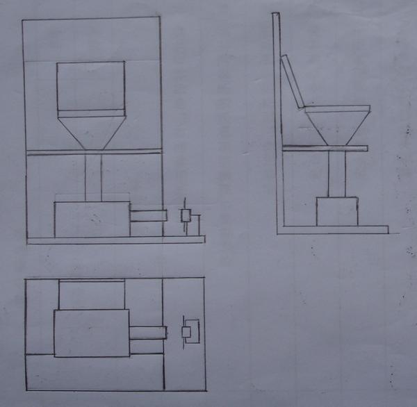 該作品是采用木板、塑料、卡紙、鐵釘、螺絲等材料,約以1:8的比例制作而成。作品由廁蓋、廁圈、廁兜(呈“()”狀,中間向外突出,內(nèi)部采用黑色陶瓷材料)、管道、儲糞池、抽風(fēng)機(jī)、氣閥門等組成,坐便器連接直管道,直接接到儲糞池。從儲糞池側(cè)面上方連接一直管道,并于管道處放置一臺抽風(fēng)機(jī),將臭氣抽走。從而達(dá)到省水的效果。