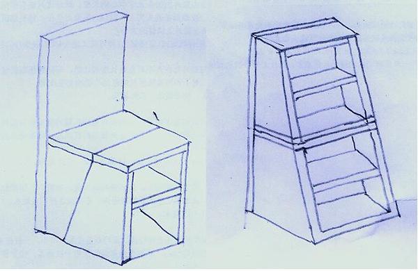 3、把椅子的靠背向前翻過來(如圖2和圖3)。這時得到一個書架(或梯子)(如圖4)。
