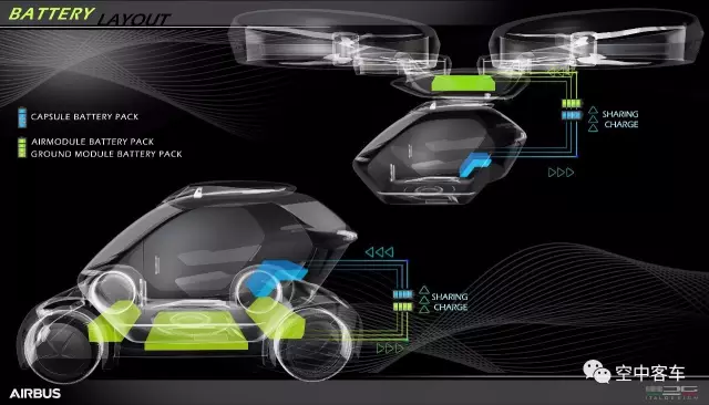 Pop.Up系統(tǒng)的關(guān)鍵組件是一個(gè)2.5m長(zhǎng)、1.4m寬的載人艙,可附著在一個(gè)電池驅(qū)動(dòng)的底盤上成為一個(gè)雙座電動(dòng)車,載人艙非常容易與底盤脫離,乘客可以通過(guò)手機(jī)應(yīng)用召喚一架8旋翼的自主無(wú)人機(jī),無(wú)人機(jī)可從空中吊起載人艙組成成為客運(yùn)無(wú)人機(jī)。