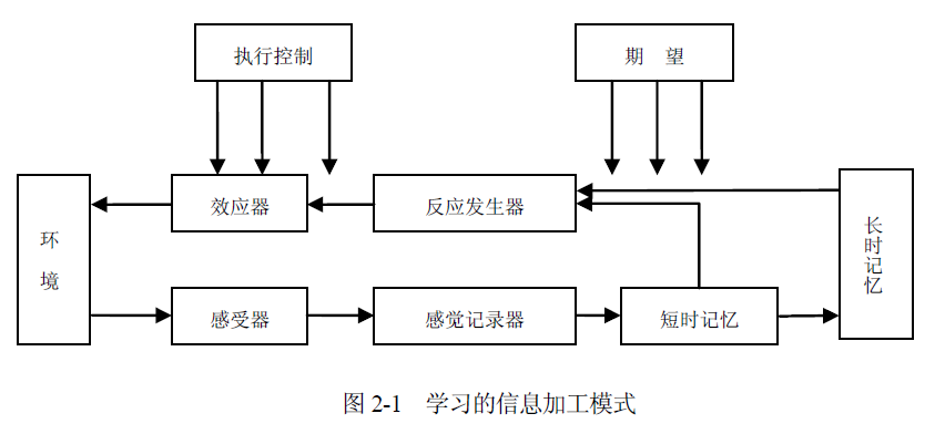 圖2-1中的“環(huán)境”,實際上就是學(xué)習(xí)的情境。模型所給出的信息處理程序是: